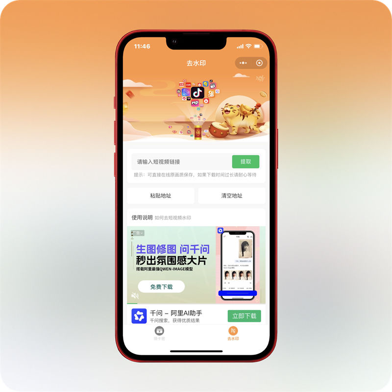 微信端多功能综合小程序源码,整合口令发卡与全网视频去水印两大核心功能,采用 PHP 独立前后端架构搭建,运行稳定易部署。源码全程深度本地化处理,剔除第三方远程依赖,所有外部资源全部本地部署加载,告别接口失效、资源加载异常等问题,使用更安全、访问更流畅。